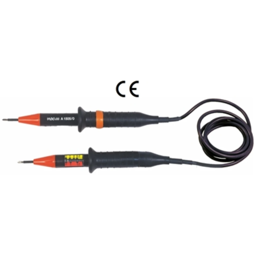 Con rivestimento protettivo in gomma antiolio Grado di protezione IP40 A 2 scale: - gialla per corrente alternata da 125 a 750V - rossa per corrente continua da 120 a 750V Per la ricerca della polarità e la determinazione delle tensioni da 110 a 440V su corrente continua e da 120 a 500V su corrente alternata (con punte fino a 750V) Impugnature di gomma con paramani, scale di facile lettura Interruttore anulare incorporato nell?impugnatura per l?inserimento sotto carica Cavo ad alto isolamento lunghezza 1 m Lampada con finestrella lenticolare
