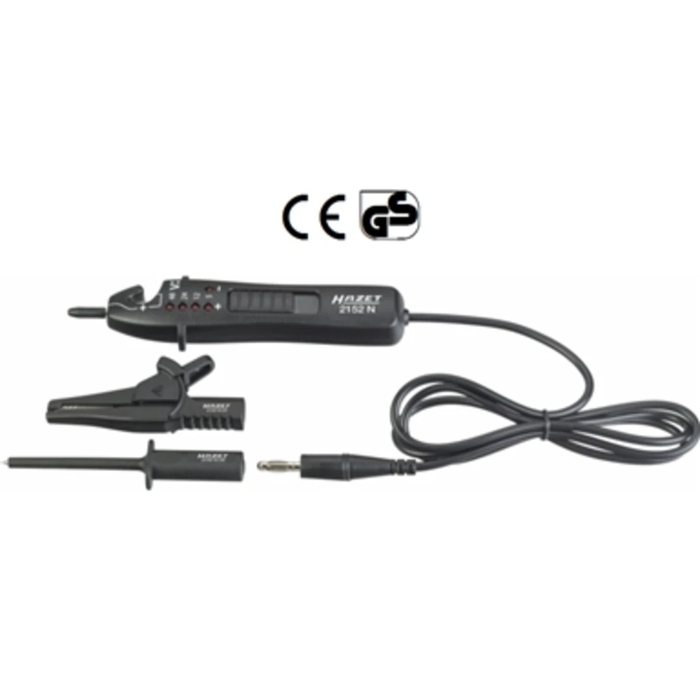Per tensioni da 3÷48 Volt Particolarmente adatto per il controllo di parti elettriche ed elettroniche su autoveicoli, per la ricerca di guasti su componenti Con 5 LED per indicare le diverse gamme di tensione Composto da: punta di contatto, ago per la perforazione del rivestimento dei cavi, morsetto a coccodrillo e punta di controllo Corpo in resina termoplastica nera - Lunghezza cavo 1 m