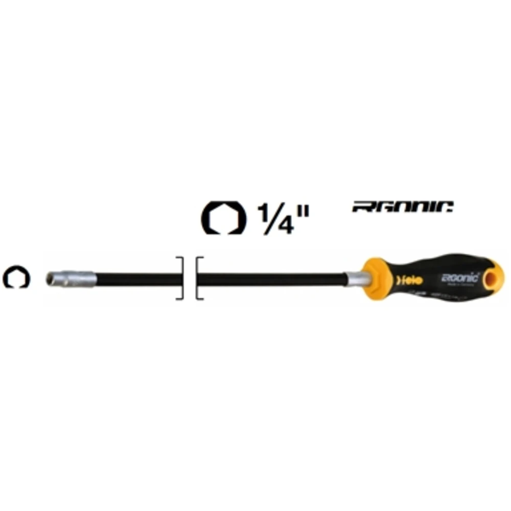 Con attacco ? Tipo con gambo flessibile e molla di tenuta, adatto per agire in spazi di difficile accesso - Serie 400 Lama in acciaio al cromo-molibdeno-vanadio - A tenuta magnetica Impugnatura bicomponente con celle in resina sintetica altamente flessibile e morbido elastomero per un?ottima resistenza a graffi ed acidi oltre ad essere gradevole al tatto Con foro trasversale - Lunghezza gambo flessibile 170 mm - Lunghezza totale 275 mm