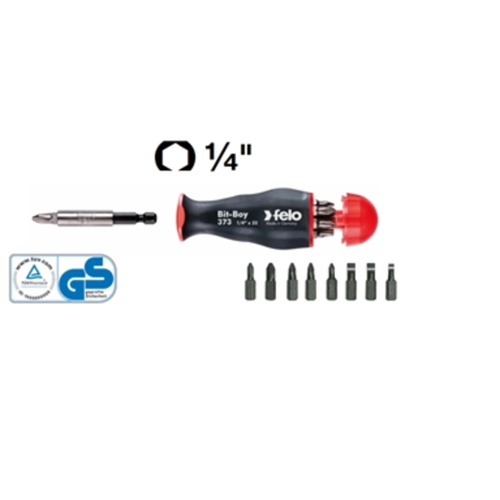 Con attacco ? - A tenuta magnetica - Impugnatura anatomica in morbida resina sintetica a serbatoio, completa di: 3 inserti per viti con intaglio 4,5 - 5,5 - 6,5 mm 3 inserti per viti a croce «PHILLIPS» - Punta DIN 0 - 1 - 2 2 inserti per viti a croce «POZIDRIV» - Punta 1 - 2 A 1575/1 - Tipo con raccordo porta inserti estraibile per uso manuale ed a macchina Lunghezza totale (senza inserto) 105 mm A 1575/2 - Tipo lungo fisso - Lunghezza totale (senza inserto) 220 mm