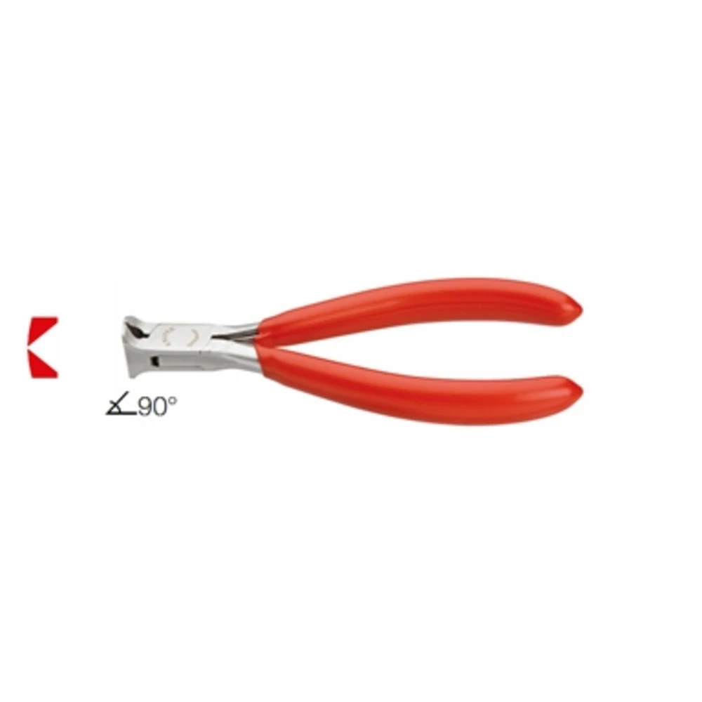Articolazione passante, precisa, poco soggetta ad usura, di lunga durata Con doppia molla fortemente assemblata, con attrito ridotto - Lavorazione di precisione Nessun rischio di contatto sul circuito dovuto allo stacco di particelle di cromo - DIN ISO 9654 - Esecuzione «Standard» - Manici rivestiti in resina termoplastica colore rosso oppure bicomponenti rosso/blu In acciaio speciale bonificato, forgiato e temperato ad olio Finitura a specchio mediante pulitura finissima In morbida resina sintetica particolarmente gradevole al tatto anche in caso d?impiego continuato - Esecuzione «ESD» - Dissipativa - Manici bicomponenti grigio/nero Esecuzione a dispersione elettrica (dissipativa) - Resistenza superfici >1x10 Ohm <1x10 Ohm In acciaio speciale bonificato, forgiato e temperato ad olio Finitura a specchio mediante pulitura finissima Proteggono i componenti disperdendo in modo adeguato e controllato l?energia elettrostatica - Esecuzione per alte prestazioni - Manici bicomponenti grigio/blu In acciaio al cromo-vanadio per molle, brunite, antiriflesso - Di lunga durata e resistenti all?usura Con cerniera chiusa e vite incassata per effettuare lavori anche in luoghi di difficile accesso Manici maggiorati per un migliore comfort durante l?utilizzo CON TAGLIENTE FRONTALE DIRITTO - A 90° Tipo per taglio raso Lunghezza totale 115 mm - Tagliente lungo senza sfaccettatura Taglia filo a bassa resistenza Ø 1,4 mm - a media resistenza Ø 0,8 mm Esecuzione «Standard» - Manici in resina termoplastica