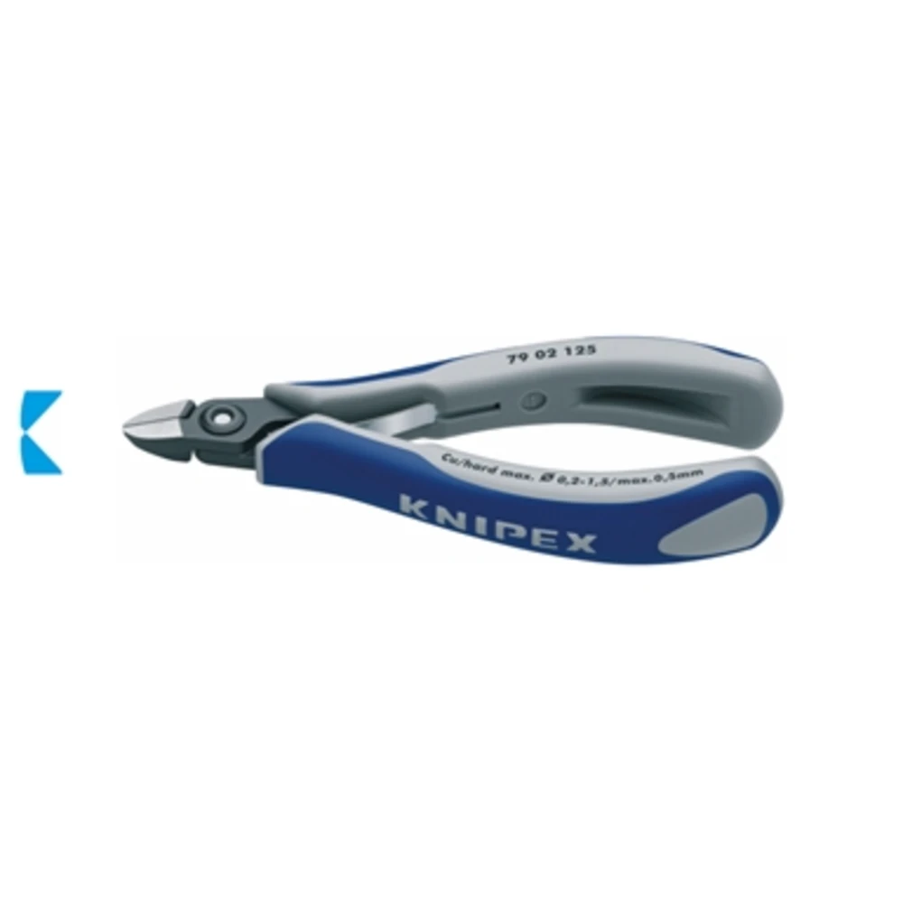 CON TAGLIENTE LATERALE Lunghezza totale 125 mm Taglia filo a bassa resistenza Ø 1,7 mm - a media resistenza Ø 1,3 mm - alta resistenza Ø 0,7 mm Tagliente con sfaccettatura molto piccola Esecuzione per alte prestazioni - Manici bicomponenti grigio/blu