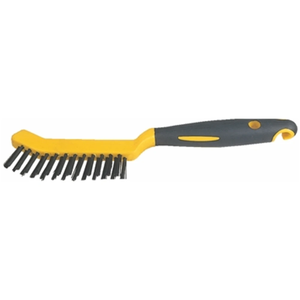 Tipo con impugnatura ergonomica, bicomponente antiscivolo Esecuzione per pinze di freni a disco Adatte per rimuovere polvere, ruggine, residui, ecc. dalla sella dei freni a disco Ideali per raggiungere posti di difficile accesso A 2 ranghi Lunghezza totale 250 mm Con filo liscio in acciaio Ø 0,30x25 mm - Per sgrossare