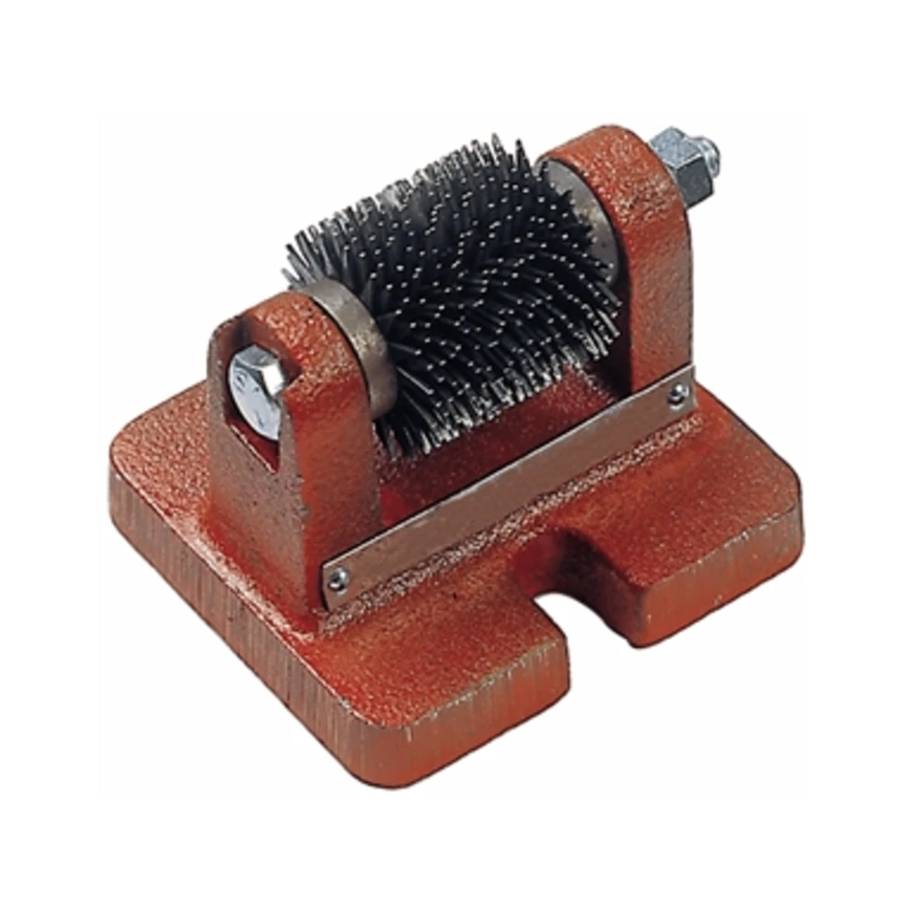 «DESMOND» Tipo da banco per mole abrasive con gambo Con rotelle in acciaio Per ravvivare la forma delle mole a gambo (sia cilindriche che coniche) montate direttamente sulle smerigliatrici portatili Di uso facile e rapido: è sufficiente tenere la mola da ravvivare appoggiata alle rotelle e farla ruotare per mezzo della smerigliatrice sulla quale è montata - In pochi istanti la mola riprenderà la forma originaria - Larghezza fascia 35 mm - Dimensioni base 85x80 mm
