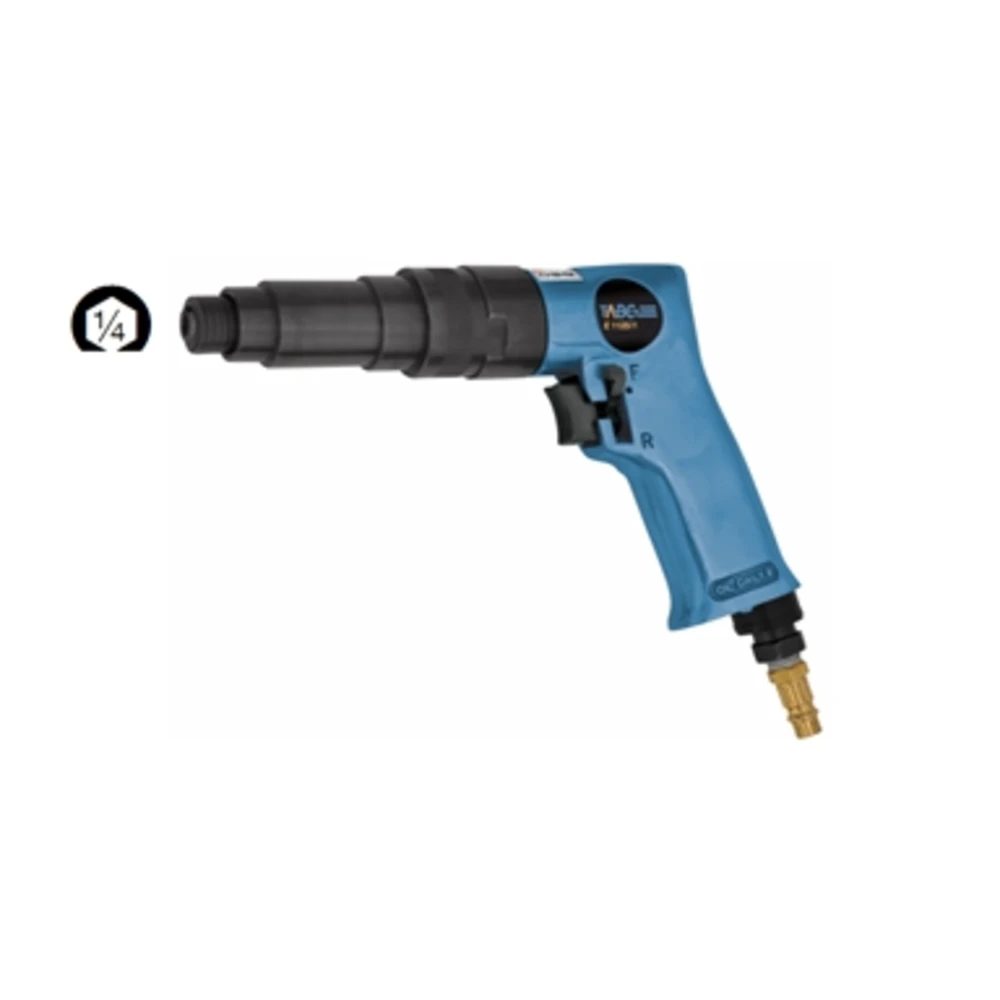 Per inserti con attacco ? E 6,3 mm Tipo a pistola Corpo in alluminio - Avviamento tramite pulsante Espulsione dell'aria posteriore attraverso l'impugnatura - Reversibile Attacco filettato ? Gas per tubi con Ø interno 10 mm Per viti fino Ø M 10 - Giri/min a vuoto max. 1800 Coppia max. di serraggio 13 Nm - Potenza 0,41 kW Consumo aria 2,9 l/sec - Rumorosità a vuoto 84 dB(A) - Vibrazioni a vuoto 2,5 m/s² Lunghezza totale 190 mm - Peso 1,1 kg