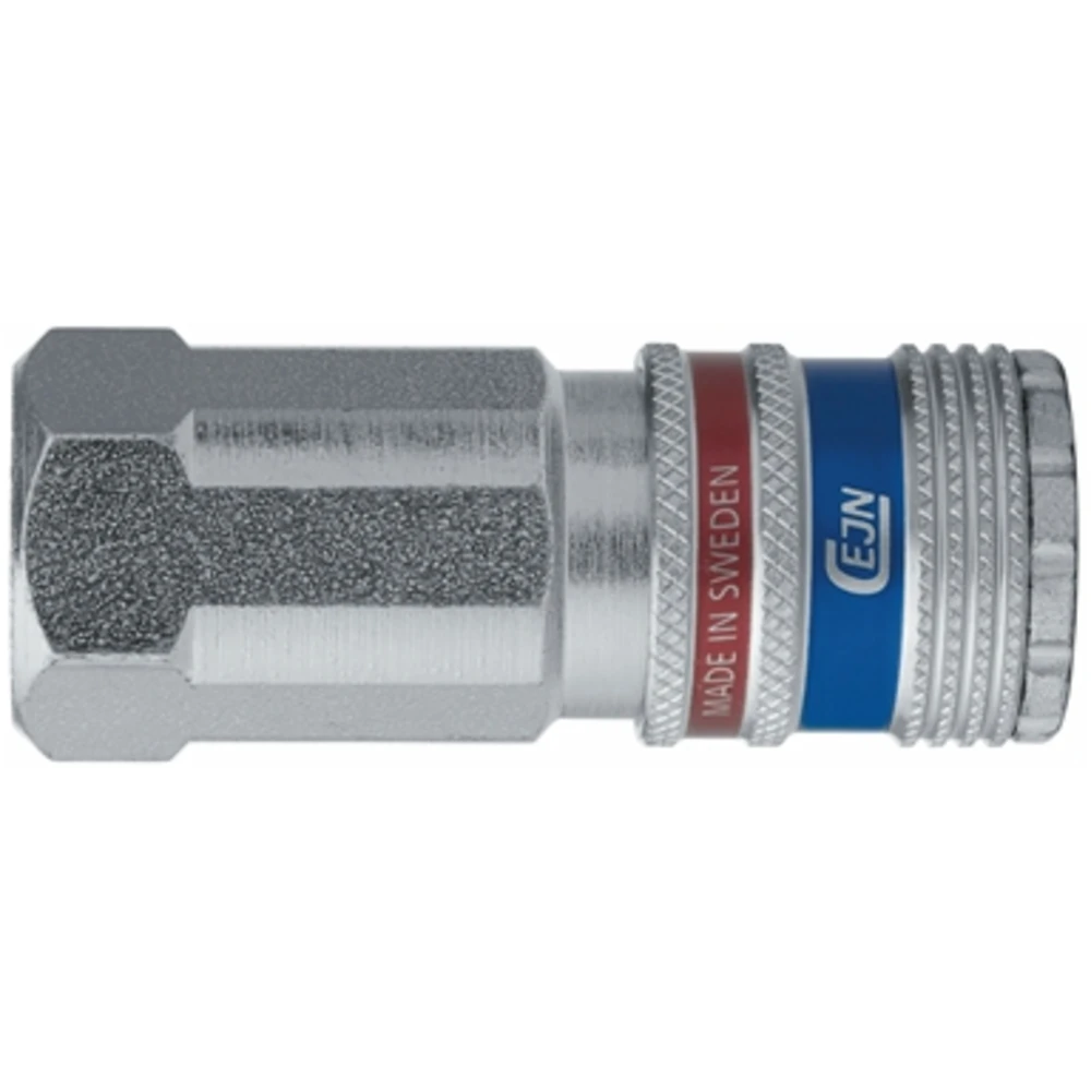 Esecuzione industriale di alta qualità ad elevata portata di flusso Adatti per numerose applicazioni, sono resistenti, duraturi, di rapido e semplice collegamento Corpo in ottone nichelato - Ghiera di bloccaggio in acciaio temperato e nichelato Valvola in ottone, guarnizioni in Nitrile (resina sintetica) Molle e sfere di bloccaggio in acciaio inossidabile Compatibili con la maggior parte degli attacchi e dei giunti distribuiti sul territorio nazionale Tipo di sicurezza - Secondo ISO 4414 e EN 983 Con scollegamento in due fasi adatto per scaricare gli attacchi, ridurre il livello di rumorosità ed eliminare il pericolo di infortuni causati da pericolosi disinnesti improvvisi Diametro nominale 7,6 mm (") - Flusso aria 2250 l/min Pressione max. di esercizio 16 bar (230 PSI) - Pressione min. di scoppio 140 bar (2030 PSI) Temperatura di utilizzo -20°C ÷ +100°C Esecuzione con attacco filettato femmina (BSP cilindrica) - 10 pz.