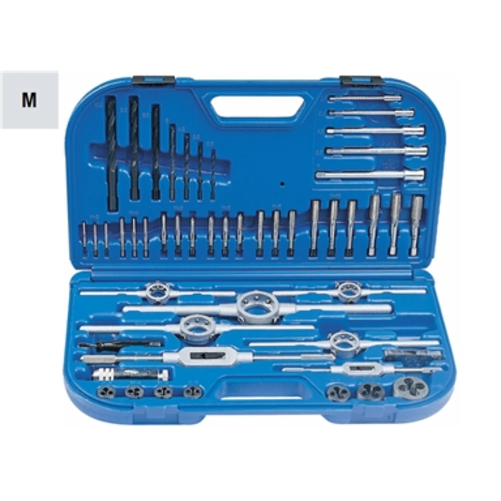 Per filettature Metriche ISO - Passo grosso In acciaio super rapido - HSS Per filettare Ø 3 - 4 - 5 - 6 - 8 - 10 - 12 mm Completa di 1 giravite, 1 contafiletti In cassetta di resina termoindurente ad alta resistenza - Dimensioni LxPxh 520x220x60 mm