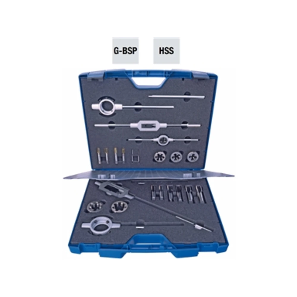 Tipo per filettature Gas cilindrica per tubi British Standard Per 6 diametri di filettatura pollici - - - - - 1 In acciaio HSS In cassetta di resina termoindurente ad alta resistenza Dimensioni LxPxh 430x370x100 mm