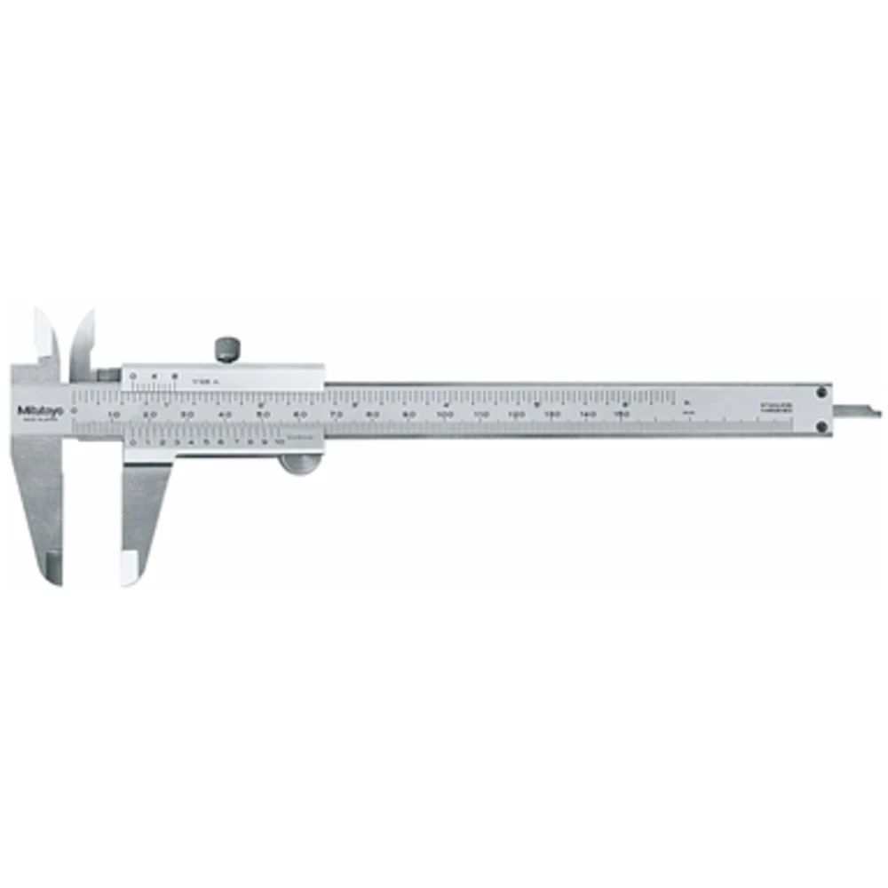 In acciaio inossidabile temprato - Grado di precisione DIN 862 Scala e nonio cromati opachi - Superfici di contatto lappate Becchi con punte per misurare piccoli cave e fori Lettura di mm (0,05 mm) e di pollice Con numero di identificazione individuale, controllati e collaudati singolarmente Forniti con custodia Tipo con bloccaggio a vite e corsoio monoblocco
