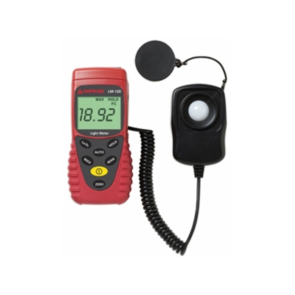 Strumento adatto per rilevare l?intensità luminosa in ambienti industriali e professionali come officine, magazzini, uffici, scuole, ospedali, hotel, ecc. Campo di misura da 0÷20000 lux (o 20000 candele) selezionabile direttamente sullo strumento Risoluzione 0,01 lux (candele) - Precisione ±3% Con calotta del sensore con cavo Funzioni: HOLD mantenimento dei valori, AUTORANGE e ZERO Ampio display LCD a 3 cifre, retroilluminato Alimentazione tramite batteria da 9V ? Autonomia circa 200h Fornito con custodia