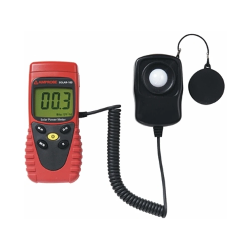 Strumento adatto per misurare l'energia e la radiazione solare Consente di verificare l'efficienza, l'esatta inclinazione e l'energia complessiva ricevuta e trasmessa, dei pannelli di impianti solari, il passaggio dei raggi attraverso vetri trasparenti e con pellicole e l'intensità della luce attraverso i finestrini delle auto Campo di misura da 0÷2000 W/m² - 634 BTU/(ft² x h) Risoluzione 0,1 e 1 W/m² e 0,1 e 1 BTU Funzioni: HOLD mantenimento dei valori, MIN/MAX Ampio display LCD a 3 cifre, 1999 digit Alimentazione tramite batteria da 9V (inclusa) - Autonomia circa 100h Fornito con custodia