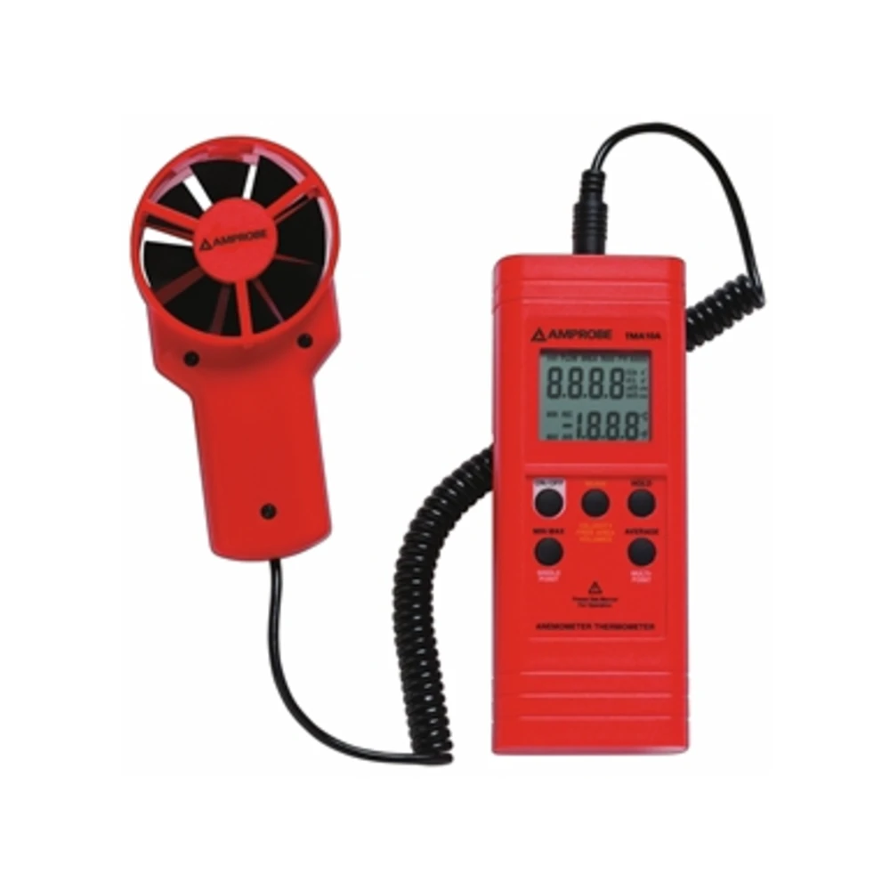 Per misurare la qualità dell'aria all'interno degli ambienti industriali, commerciali o residenziali e in applicazioni HVAC/R (riscaldamento, ventilazione, condizionamento dell?aria e refrigerazione) Tipo con sensore a ventola separato Adatto per misurare contemporaneamente velocità, flusso e temperatura dell'aria Funzioni: HOLD mantenimento dei valori, minimo e massimo e calcolo della velocità media per punti (fino a 2h) o multipunto (fino ad 8 misure) Possibilità di selezionare l'unità di misura del vento in sistema metrico oppure americano (m/sec, ft/min) e commutazione da °C a °F Campi di misura: - velocità dell?aria da 0,4÷25 m/sec (125÷4900 ft/min) - flusso dell?aria da 0,01÷99,99 m³/s (1÷9999 ft³/min) - temperatura da 0°C÷50°C (32°F÷122°F) Ampio display LCD con doppia indicazione, a 4 cifre, per la lettura contemporanea di temperatura e velocità o flusso dell?aria Alimentazione tramite batteria da 9V - Autonomia circa 100h - Spegnimento automatico Con predisposizione per uscita dati (RS232) Fornito con valigetta in resina sintetica
