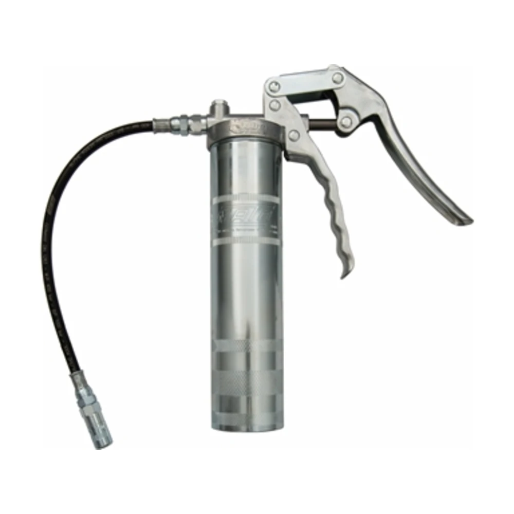 Tipo per cartucce di grasso ?LUBE SHUTTLE? Corpo in acciaio zincato di alta qualità con zigrinature antiscivolo Costruiti secondo DIN 1283 - TÜV-GS Consente l?utilizzo del 99,9% di grasso contenuto e di controllare il tipo e la quantità residua in ogni momento - Sistema già adottato ed offerto da primari produttori di grasso Caricamento della cartuccia di grasso molto rapido: basta inserirla e avvitarla Esecuzione per impiego con una sola mano Ergonomico, con impugnatura a pistola Con canna flessibile di sicurezza lunghezza 300 mm (pressione di scoppio 1000 bar) a norme DIN 1283 e testa con pinza prensile per ingrassatori tipo «Hydraulic» Pressione di avanzamento 400 bar, garantiti - Corpo Ø 55 mm - Lunghezza totale 280 mm
