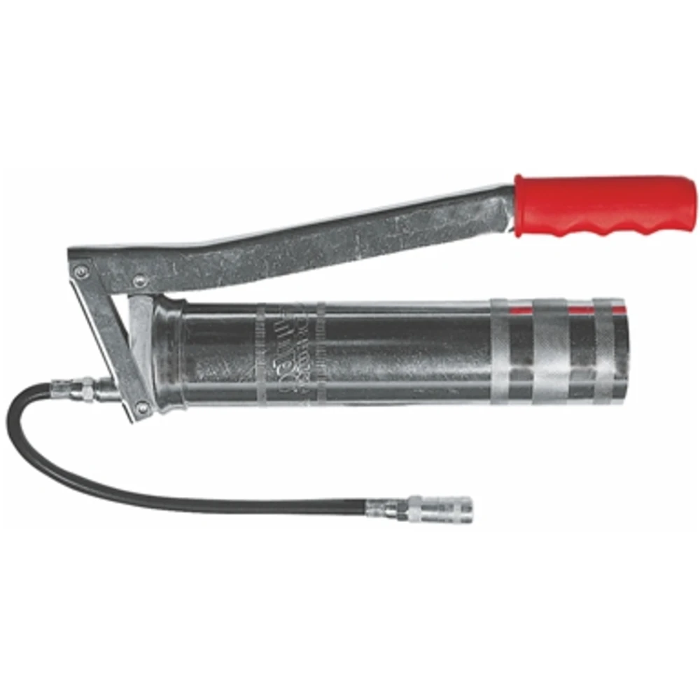 Tipo per cartucce di grasso ?LUBE SHUTTLE? Corpo in acciaio zincato di alta qualità con zigrinature antiscivolo Costruiti secondo DIN 1283 - TÜV-GS Consente l?utilizzo del 99,9% di grasso contenuto e di controllare il tipo e la quantità residua in ogni momento - Sistema già adottato ed offerto da primari produttori di grasso Caricamento della cartuccia di grasso molto rapido: basta inserirla e avvitarla Esecuzione con leva laterale Con canna flessibile di sicurezza lunghezza 300 mm (pressione di scoppio 1000 bar) a norme DIN 1283 e testa con pinza prensile per ingrassatori tipo «Hydraulic» Pressione di avanzamento 400 bar, garantiti - Corpo Ø 56 mm - Lunghezza totale 300 mm K 3897/45 - Senza cartuccia K 3897/5 - Con cartuccia di grasso universale ?LUBE SHUTTLE? K 3897/9 da 400 g