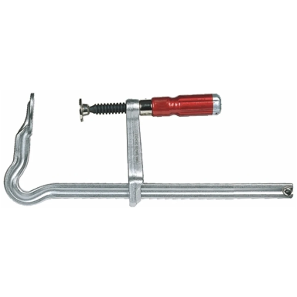 Interamente in acciaio con ganasce forgiate ed asta nervata - Esecuzione zincata Ganascia superiore ed asta in un unico profilato di acciaio con nervatura di forma speciale per sopportare elevate pressioni Ganascia inferiore in acciaio forgiato con vite temperata e piattello orientabile fino a 35° Esecuzione con arco ad OMEGA L?arco ad omega riduce la tensione nei punti di maggior sforzo ed ottimizza il serraggio delle ganasce aumentando la forza di tenuta Lunghezza utile ganasce 120 mm - Sezione asta L x 25x12 mm Impugnatura di legno con ghiera di sicurezza, senza rivetto Forza di serraggio (apertura 150 mm) 7500 N - 10 pz.