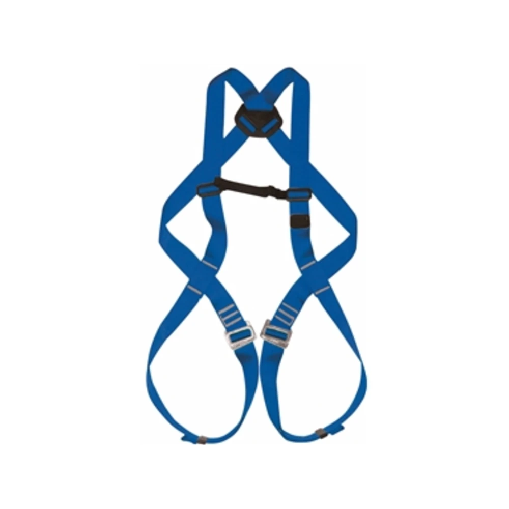 Tipo con 1 attacco posteriore EN 361 Cuciture in filato di poliammide ad alta tenacità Fibbie per cosciali ad incastro in acciaio zincato Nastri regolabili in poliammide, larghezza 44 mm Taglia unica Circonferenza: torace 75÷150 cm - coscia 60÷85 cm Altezza busto 55÷85 cm