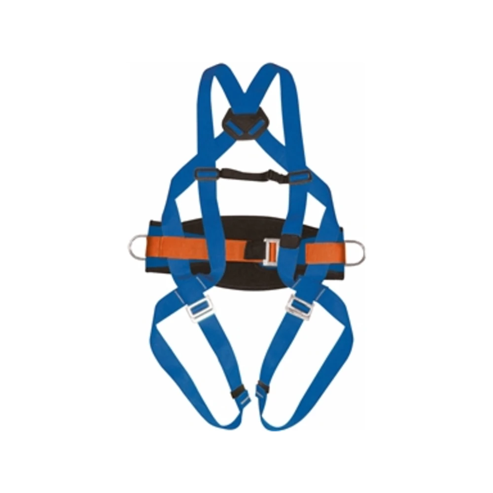 Tipo con 1 attacco posteriore e cintura di posizionamento EN 358 - EN 361 Cuciture in filato di poliammide ad alta tenacità Fibbie per cosciali ad incastro in acciaio zincato Nastri regolabili in poliammide, larghezza 44 mm Circonferenza: torace 75÷150 cm - coscia 60÷85 cm Altezza busto 65÷85 cm Cintura con 2 anelli laterali a "D" in acciaio e fibbia a regolazione continua Schienale ergonomico e confortevole imbottito in schiuma Altezza schienale 200 mm Circonferenza bacino 90÷120 mm