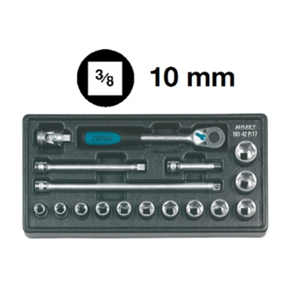 Assortimento con chiavi a bussola ed accessori attacco ? in alloggiamento da 1/3 12 chiavi a bussola esagonali A 3130/1 mm 10÷22 1 leva a cricchetto A 3131/5 3 prolunghe A 3131/6 mm 75 - 150 - 250 1 snodo cardanico A 3131/7