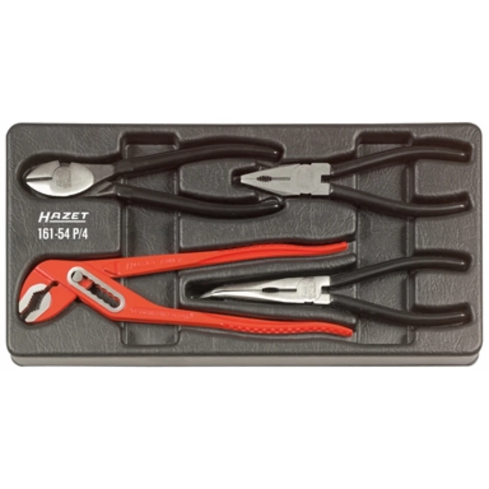Assortimento con pinze e tronchese in alloggiamento da 1/3 1 pinza a becchi mezzotondi lunghezza 195 mm 1 pinza universale lunghezza 160 mm 1 tronchese lunghezza 180 mm 1 pinza regolabile per tubi e dadi lunghezza 240 mm