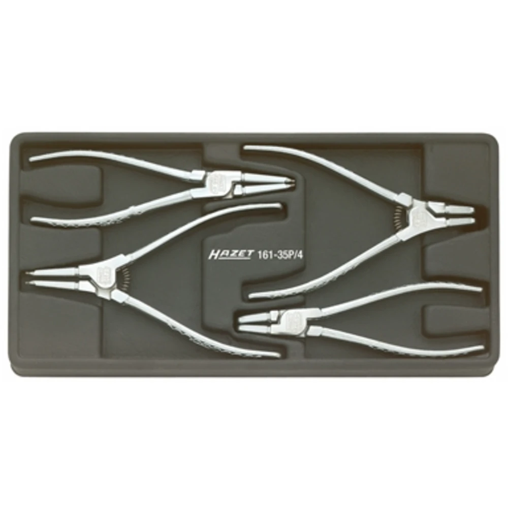 Assortimento con pinze per anelli di sicurezza SEEGER in alloggiamento da 1/3 1 pinza a becchi diritti per anelli interni B 1750/0 per Ø 19÷60 mm 1 pinza a becchi piegati per anelli interni B 1751/0 per Ø 19÷60 mm 1 pinza a becchi diritti per anelli esterni B 1752/0 per Ø 19÷60 mm 1 pinza a becchi piegati per anelli esterni B 1753/0 per Ø 19÷60 mm