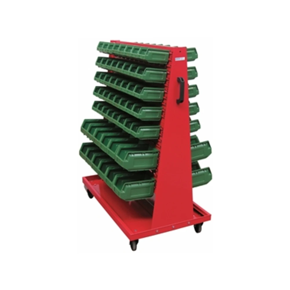 In polietilene ad alta densità (PEHD) altamente resistenti al calore, olii, grassi, acidi, ruggine ecc. Sono indeformabili e quindi è possibile la sovrapposizione di uno o più contenitori della stessa misura Con spazio portaetichetta e possibilità di aggancio al carrello N 9010/6 ed al pannello N 9010/7 CARRELLO PORTA CONTENITORI In lamiera elettrosaldata e verniciata, rosso RAL 3002 Con 4 ruote in gomma di cui 2 girevoli ed 1 con dispositivo di bloccaggio Adatto per esigenze di magazzinaggio mobile Nei carrelli possono essere applicati a scelta i contenitori N 9010/1 ÷ N 9010/5 Dimensioni LxPxh 1060x610x1300 mm Fornito vuoto e smontato Tipo completo di 104 contenitori colore verde Composto da: 1 carrello N 9010/6 - 80 contenitori N 9010/1 - 24 contenitori N 9010/2 Fornito smontato